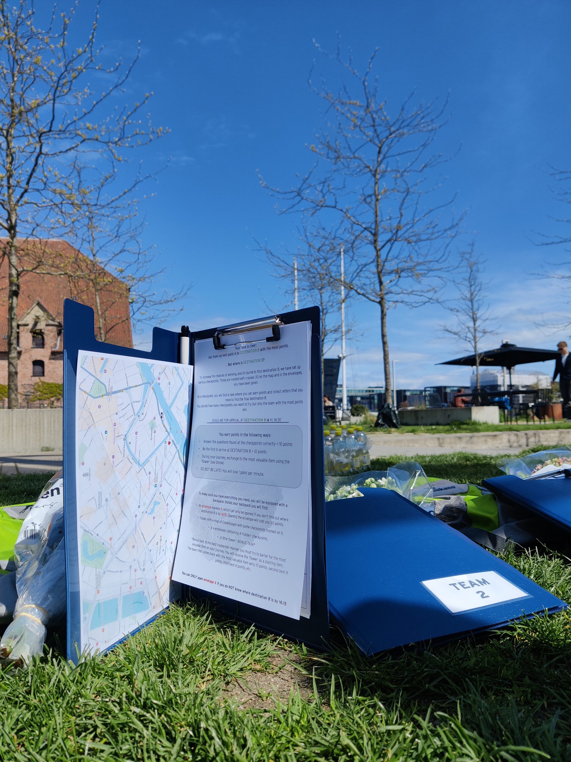 Rundt omkring i København har vi placeret en række check points. Nogle er markeret med X på jeres kort fra start, mens andre er hemmelige og som I finder ledetråde til i de kuverter, I har fået udleveret.