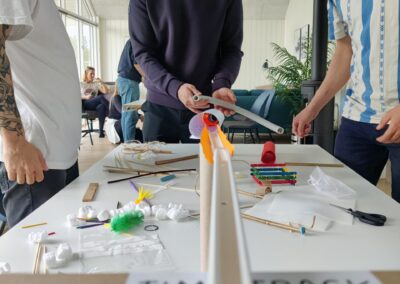 Tidspresset og den fælles deadline skaber intens stemning, grin og masser af engagement. Når tiden er gået, testes alle baner uden berøring – og spændingen er til at tage og føle på, når kuglerne sættes i gang.